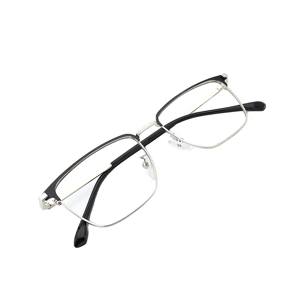 Premium Silver Black Clubmaster Eyeglasses-66029